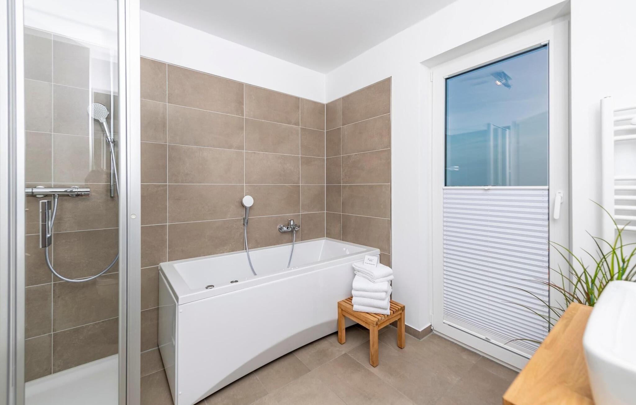 Den dejlige beliggenhed med direkte udsigt til Slien, et privat wellness-område og de rummelige terrasser præger denne ejendom. På solsiden er der landskabsvandring med terrasser i sydvest beliggenhed og fantastiske solnedgange. Dette helt specielle feriehus er omgivet af vand på et smalt næs mellem Slien og sejl- og sportsbådshavnen i ferieområdet Olpenitz. Sandstranden kan nås på få minutter til fods. Højdepunktet er studiet med en tilstødende stor tagterrasse og 360° vandudsigt Hvad enten det er en havnebiograf eller et flyveshow med vilde gæs, ænder og svaner... Her tilbydes underholdning tæt på naturen. En pejs, gulvvarme og et privat wellnessområde sørger for hyggelig hygge i hver sæson. Derudover byder det moderne hjemmeunderholdningsprogram på underholdning på nordiske dage med dårligt vejr. Ankom og nyd Slien og Østersøen på tre. I kan slappe af i dette feriehus. Sommerhusets opholds- og spisestue er oversvømmet med lys. Gennem vinduesfronten fra gulv til loft kan I se den idylliske Sliens bredder, som blidt svajer i Østersøbrisen. Strandskader, ænder, gæs, ren natur. Den direkte tilstødende store terrasse inviterer jer til at blive hængende. I kan nyde idyllen ved Slien, mens I spiser et feriemåltid sammen eller har en hyggelig grillaften. Fantastiske solnedgange er garanteret. Det fuldt udstyrede køkken-alrum lader intet tilbage at ønske. Soveområdet er på første sal. I kan falde i søvn i to soveværelser og vågne op til udsigten over vandet. Det store soveværelse vender ud mod Slien og er indrettet med en dobbeltseng. Det andet soveværelse har udsigt over lystbådehavnen og har to enkeltsenge, der kan skubbes sammen. Også på dette niveau er det store badeværelse med udsigt over havnen og et afslappende spabad. Virkelig frem for alt andet scorer studiet med en betagende udsigt over vandet. Den store finske sauna med tilhørende bruser får wellness-hjerter til at banke hurtigere. En komfortabel sovesofa tilbyder to ekstra sovepladser på dette niveau. Interiøret imponerer med moderne maritimt design og rustikke elementer. Et gæstetoilet i stueetagen giver ekstra komfort. Der er en parkeringsplads foran huset. Og kommer I med cykler, kan I nemt opbevare dem i jeres eget cykelskur. Vores yndlingssted: At sidde på terrassen i solen med en let havbrise... og se vildgæssene tage ud i vandet. Bemærk venligst, at OstseeResort Olpenitz stadig er under opførelse på grund af stor efterspørgsel. Ikke desto mindre opfylder ejendommene allerede en 5-stjernet standard og tilbyder jer et førsteklasses ophold. Ethvert byggearbejde på resortet vil ikke påvirke jeres ferienydelse, hvorfor yderligere rabatter er udelukket.