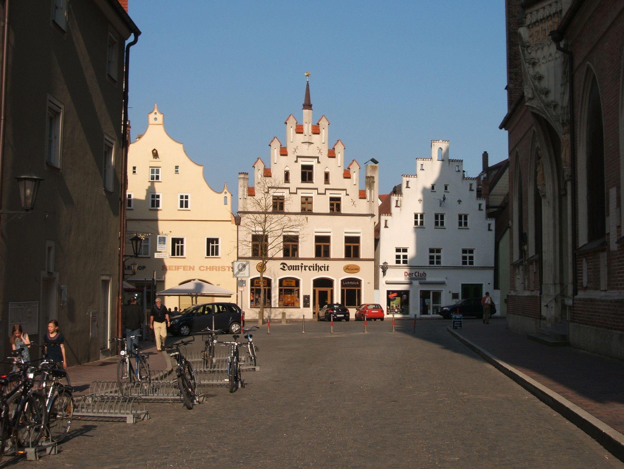 Die Kirchgasse hat ihren Namen von der größten Kirche Landshuts, St. Martin, dem unübersehbaren Wahrzeichen der Stadt.