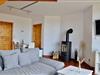Das Wohnzimmer ist gemütlich eingerichtet und verfügt über einen Kamin, der gerade an kälteren Tagen wohlige Wärme spendet.