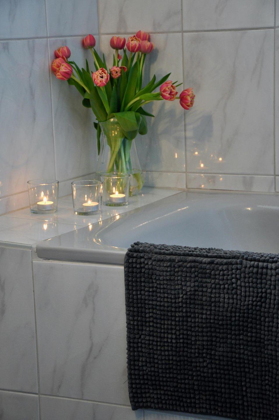 Das Badezimmer liegt im Obergeschoss und verfügt über eine Dusche sowie eine Badewanne.
