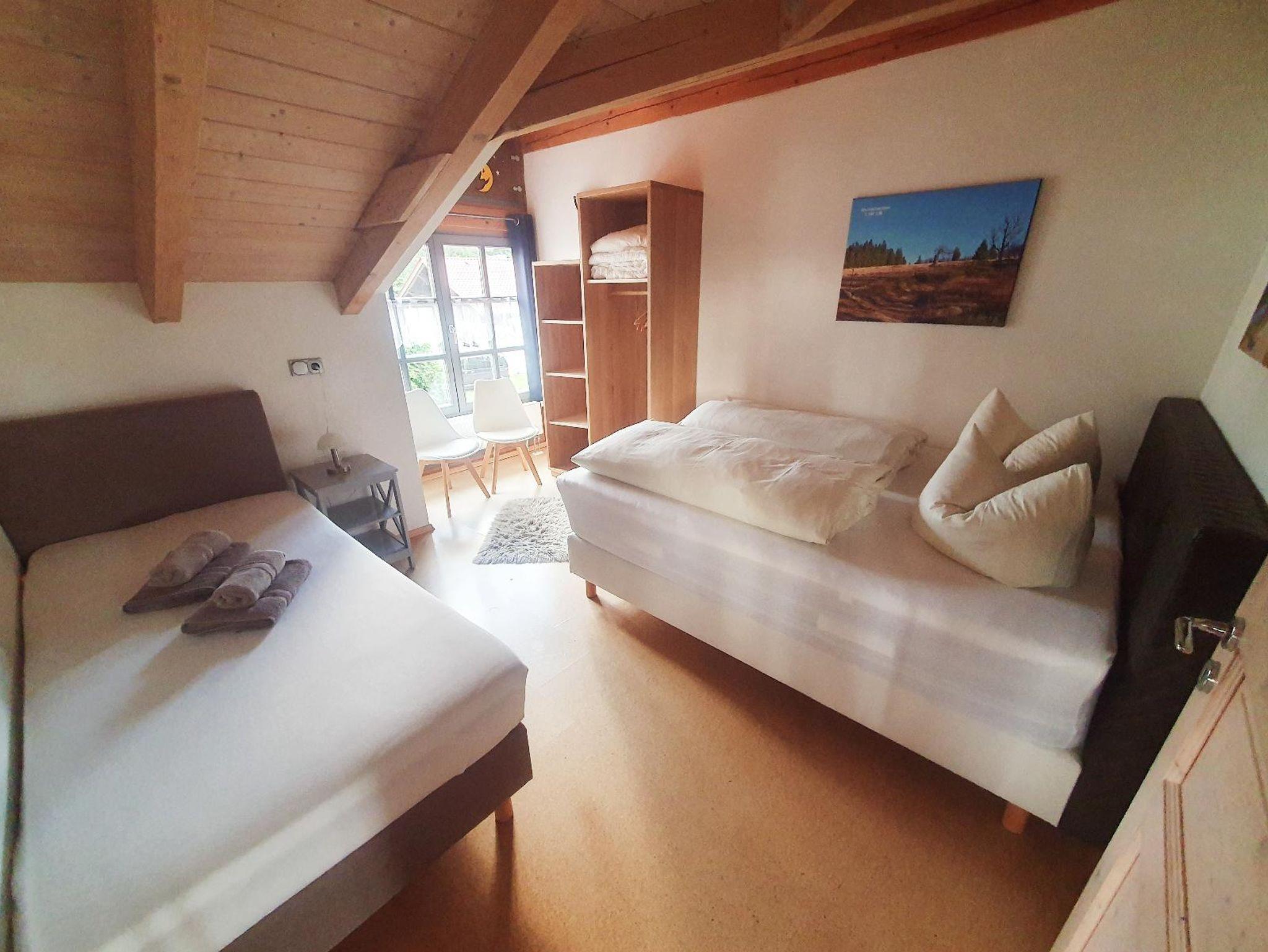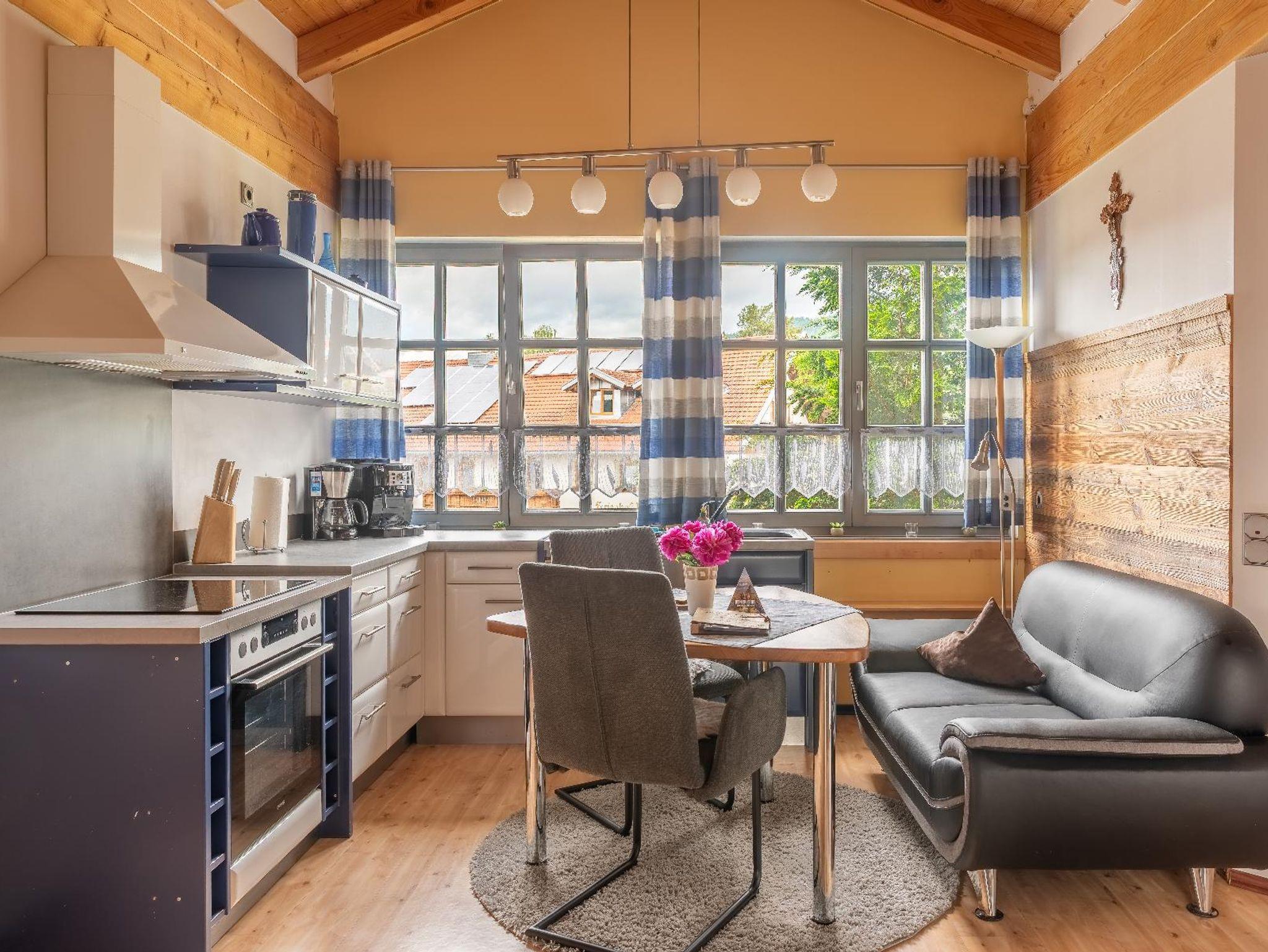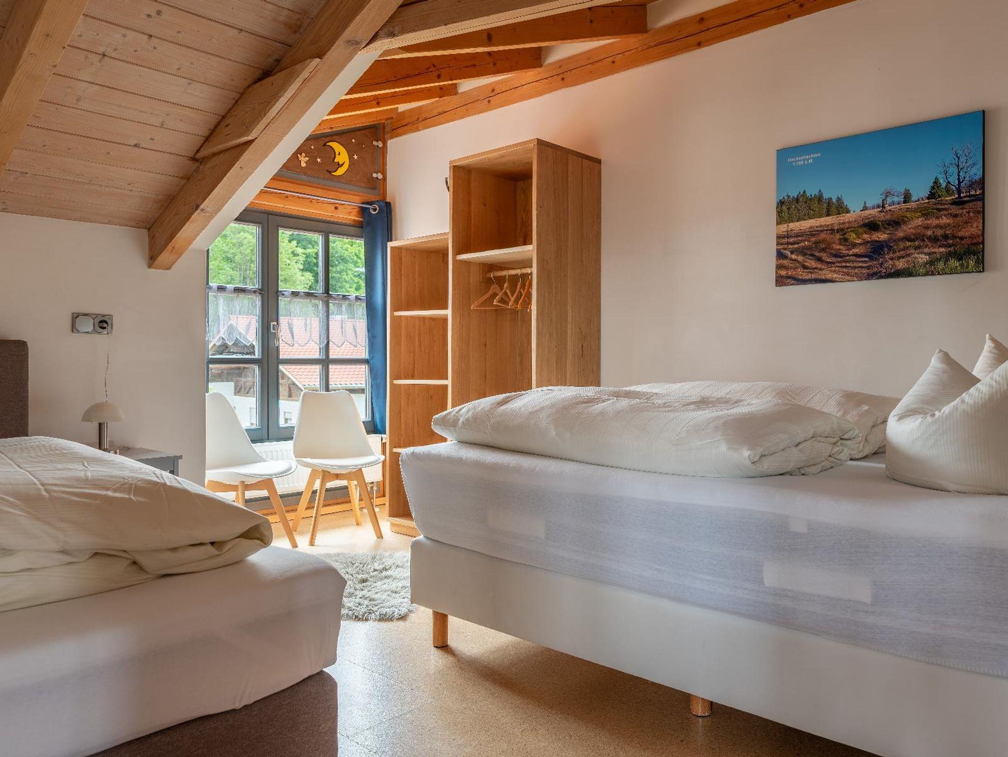Die Ferienwohnung Silberberg verfügt über 2 getrennte Schlafräume: ein Elternschlafzimmer (großes Boxspringbett.) und ein Kinderschlafzimmer mit einem Doppelboxspringbett und einem Einzelboxspringbett. Die Küche ist u.a. mit einem großen Kühl-/Gefrierschrank, Spülmaschine und Kaffeeautomaten ausgestattet.