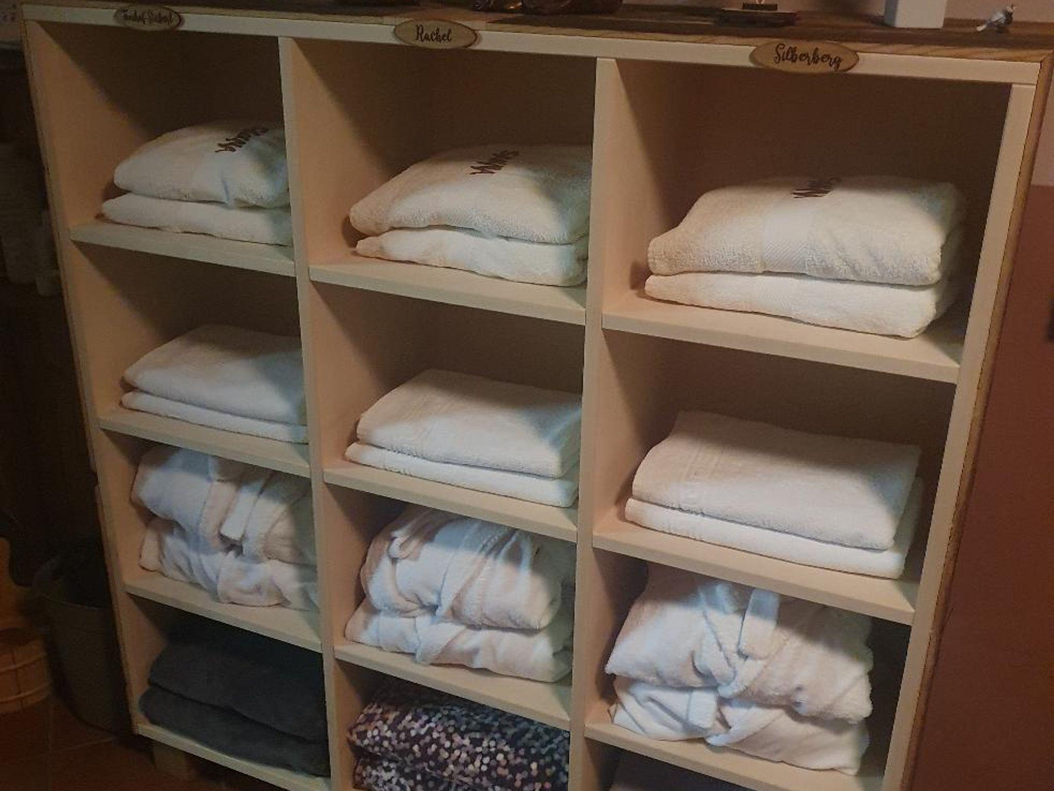 Saunabereich liegen pro erwachsene Person je ein Sauna- und Duschtuch,