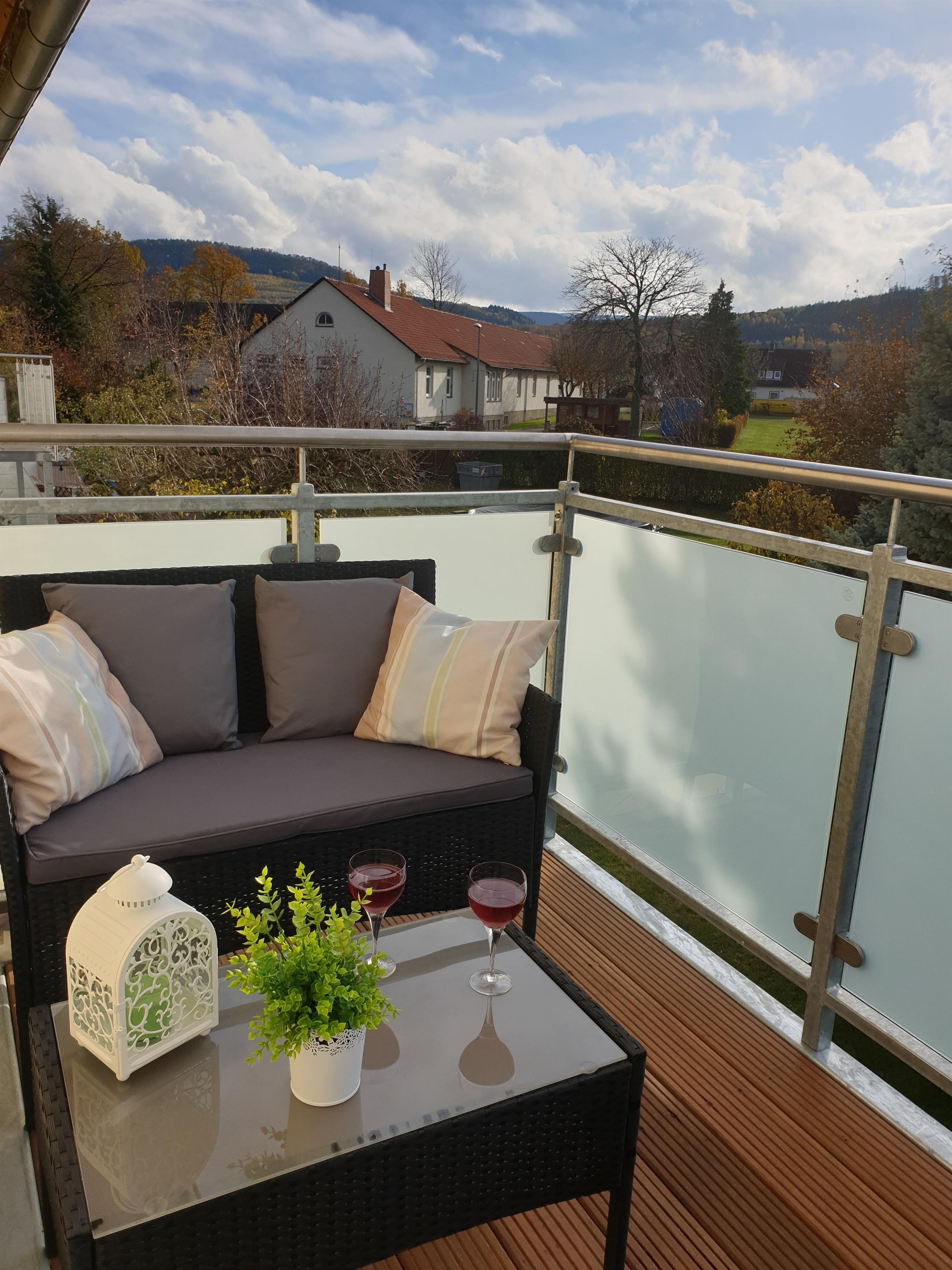 Fewo Laura bei Goslar/Harz mit 2 Schlafzimmern, vollausgestatteter Einbauküche und überdachtem Südbalkon