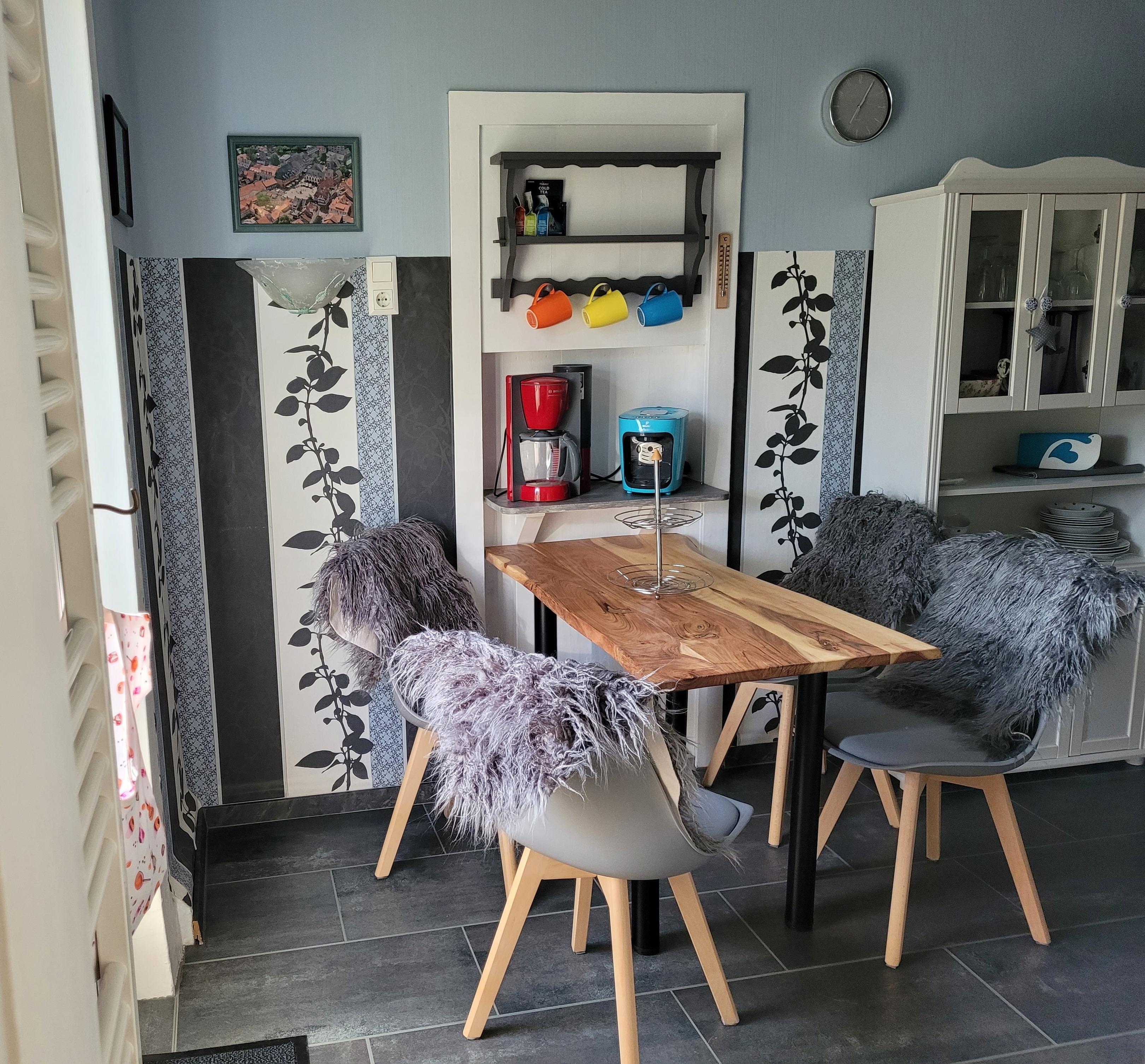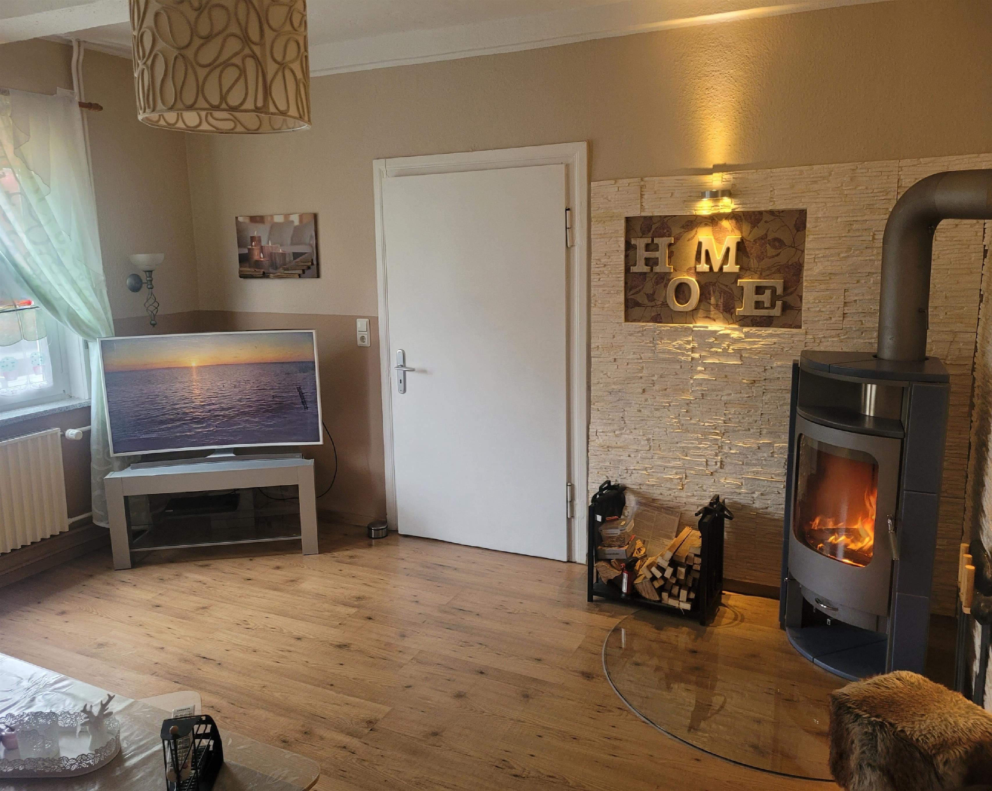 Eine vollausgestattete Einbauküche ist vorhanden, ein Tageslicht-Bad mit Dusche und Waschmaschine(2€ pro Waschgang), ein gemütliches Wohnzimmer mit Relaxsesseln, Kaminofen, Smart-TV und Blu-Rayplayer.