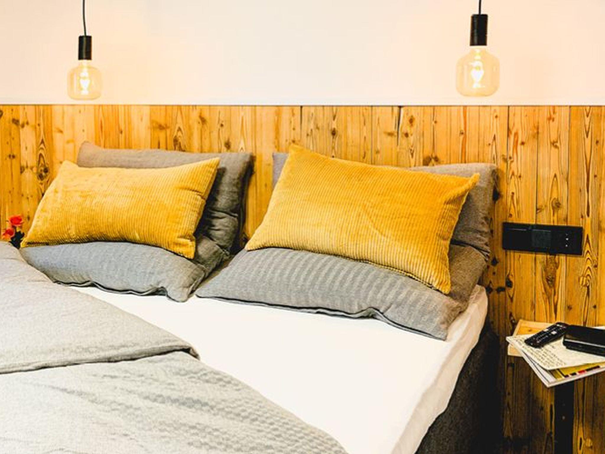 Auf ca. 26 m² erwartet euch ein individuell eingerichtetes Apartment mit einem Schlafzimmer mit Boxspringbett in Queensize Größe (Größe: 160x200) und einem eigenen Ess- und Wohnbereich. Die Küchenzeile ist mit zwei Induktionskochfelder, einer Spüle und einem Kühlschrank ausgestattet. Die anschließende Theke bietet genügend Platz zum Essen. Der ausziehbare Lesesessel (Größe: 106x192 cm) kann als zusätzliches Bett genutzt werden. Das kleine Bad ist ausgestattet mit einer Dusche, flauschigen Handtüchern und einem Fön. Das Apartment verfügt über einen Smart-TV für Streaming und kostenfreies WLAN.
