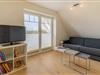 Den er velindrettet med alt, hvad I vil få brug for til en skøn og afslappende ferie ved Schleswig-Holsteins vestkyst. Den åbne lejlighed er veludstyret, og I finder alt i det lækre badeværelse. Det øverste soveværelse kommer I til via den lidt stejle trappe med gelænder i begge sider.