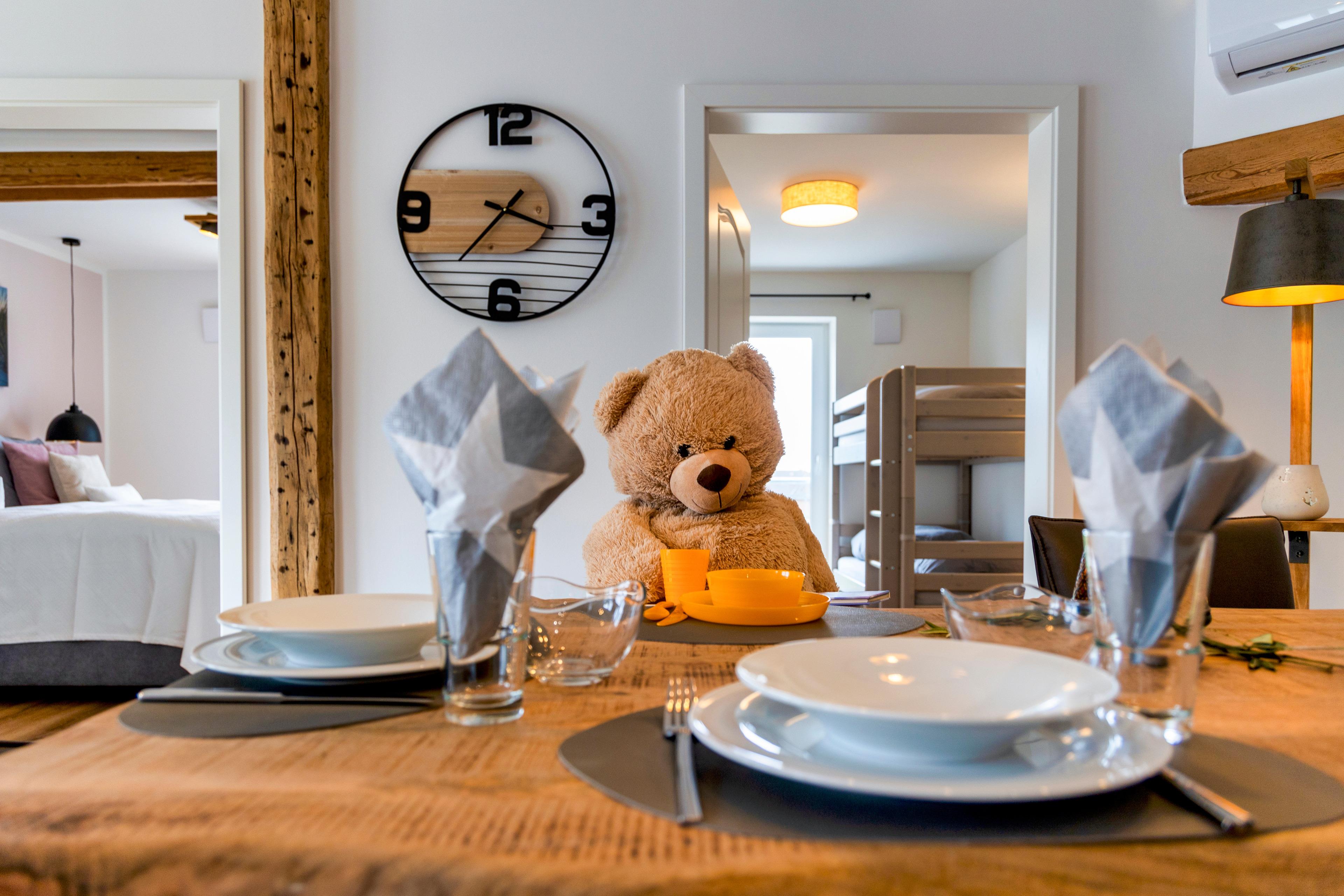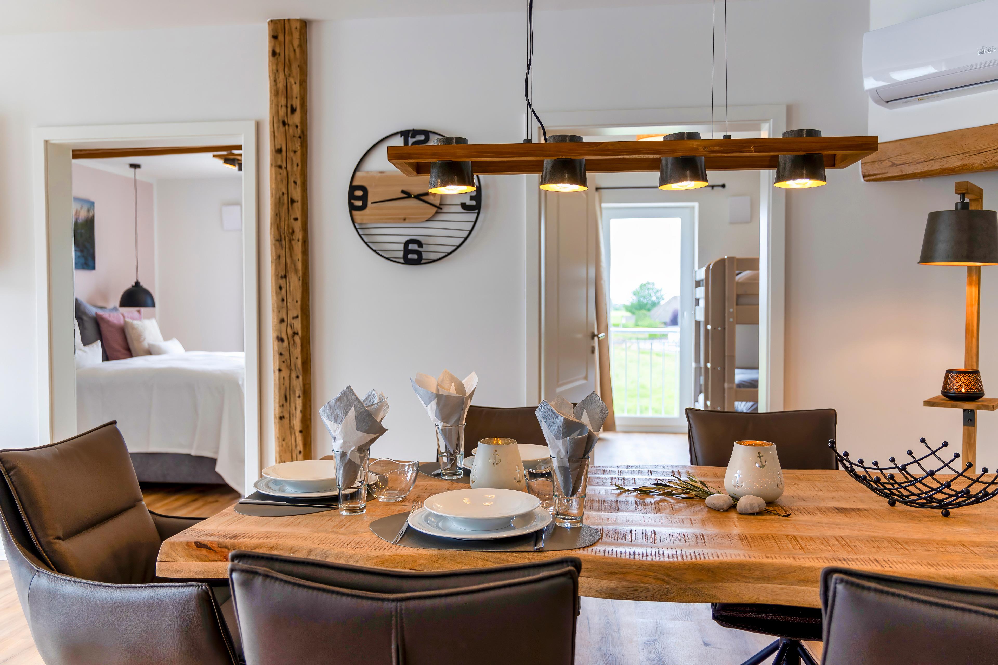 Unser außergewöhnliches Feriendomizil, 2024 aus einem ehemaligen landwirtschaftlichen Gebäude erschaffen, bietet Ihnen modernen Wohnkomfort, ohne den traditionellen Charme zu verlieren. Mit viel Liebe zum Detail wurden die alten Balken aufwendig restauriert und erhalten, um eine einzigartige Atmosphäre zu schaffen. Die Wohnungen sind hell, modern und luxuriös eingerichtet.