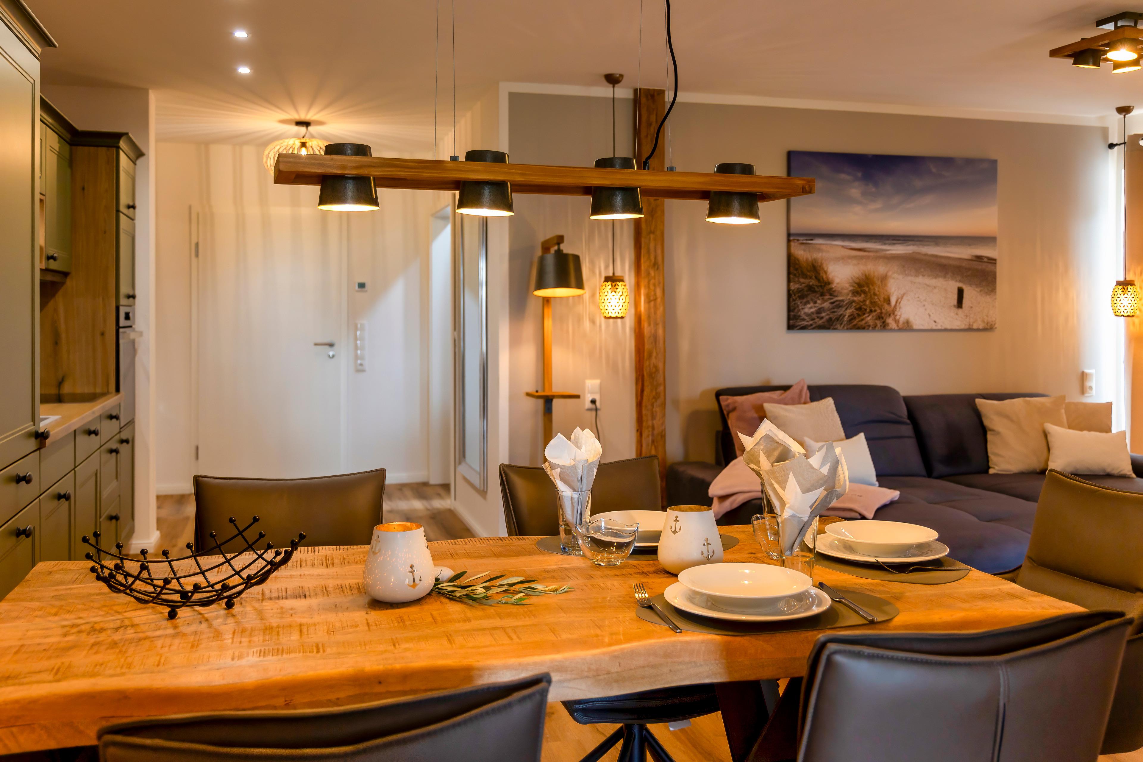Eine Fußbodenheizung sorgt im ganzen Haus für wohlige Wärme und eine Klimaanlage rundet das ganze ab. In den stilvollen Bädern finden Sie bodengleiche Duschen und Infrarotkabinen, die nach einem erfrischenden Tag an der Nordsee zum Aufwärmen einladen. Genießen Sie ein Glas Wein und entspannen Sie anschließend im bequemen Boxspringbett, vielleicht mit einem Film auf dem großen Flachbildfernseher.