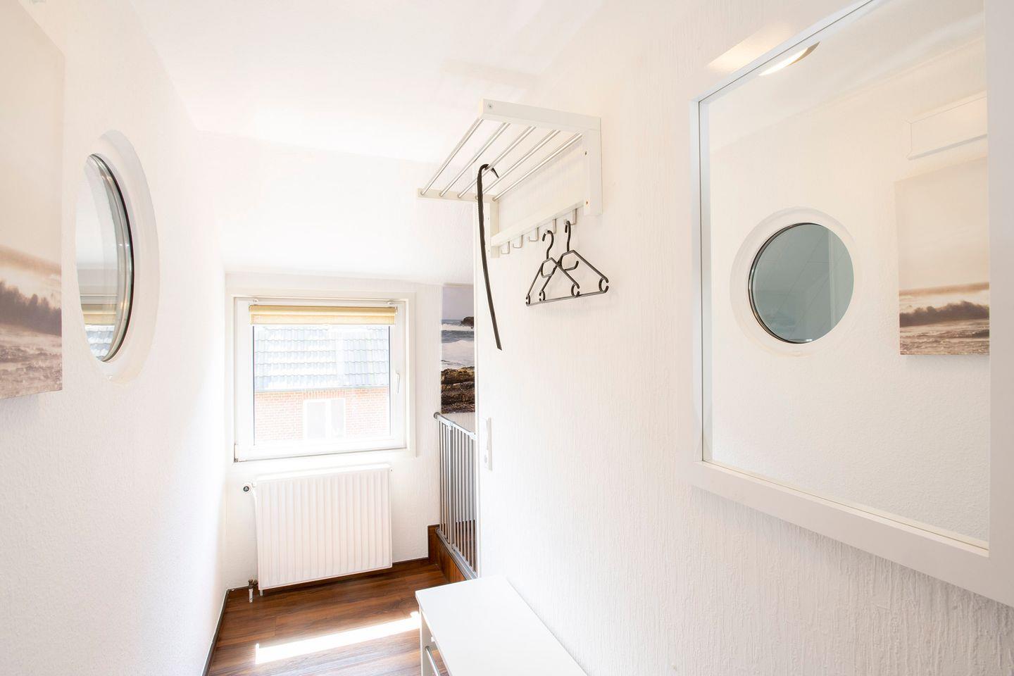 Die Ferienwohnung liegt in der 1.Etage und empfängt Sie mit einem hellen lichtdurchfluteten Wohnbereich mit offener Galerie, die jedoch nicht betreten werden darf. Angrenzend befindet sich die Küchenzeile mit gemütlichem Essplatz.