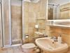 Das Badezimmer ist ausgestattet mit einer Dusche, einem Waschbecken und einem WC.