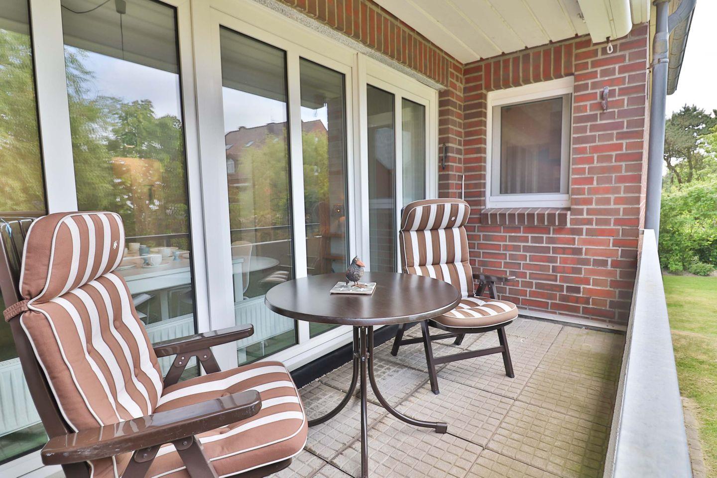 Die Ferienwohnung „Inselzeit“ befindet sich im Obergeschoss eines Hauses in zentraler Lage. Sie liegt auf der von der Straße abgewandten Seite des Hauses und ist deshalb sehr ruhig. Mit 60m² teilt sie sich auf in zwei Schlafzimmer, einen großen Wohn-/Essbereich, eine Küche, ein Badezimmer und einen Balkon mit Blick ins Grüne. Sie ist für drei Personen geeignet. Bei Bedarf kann eine weitere Person auf dem ausklappbaren Sessel im Schlafzimmer schlafen.