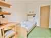 Im kleineren Schlafzimmer befindet sich ein Einzelbett (90 x 200 cm), ein Kleiderschrank und ein kleiner Schreibtisch. Der Sessel in diesem Raum ist ausklappbar und kann bei Bedarf zu einer weiteren Schlafmöglichkeit (ca. 80 x 190 cm) erweitert werden.