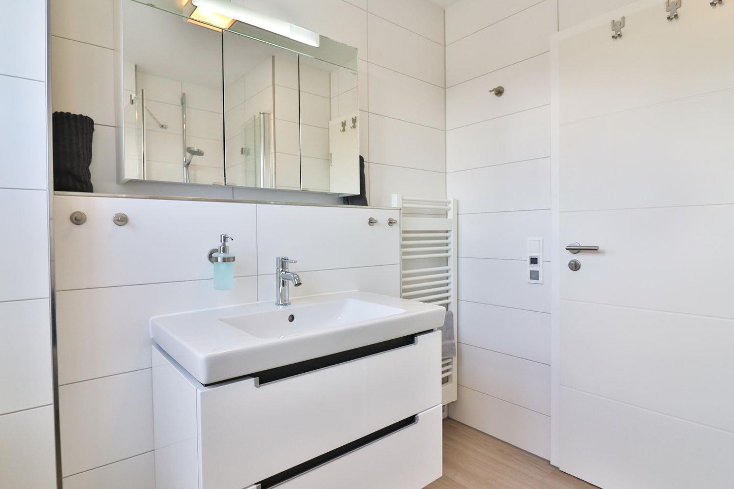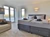 Eines der Highlights des Hauses ist zweifellos das Schlafzimmer im Dachgeschoss mit eigenem kleinen Bad mit Dusche. Dort erwartet Sie ein großes Doppelbett (200 x 200 cm) für ruhige Träume sowie ein eigener Balkon mit einem malerischen Ausblick in die umliegenden Dünen. Ein begehbarer Kleiderschrank bietet ausreichend Stauraum für Ihre Urlaubsgarderobe und sorgt für zusätzlichen Komfort. Eine Tür zum Treppenhaus sorgt für zusätzliche Privatsphäre.