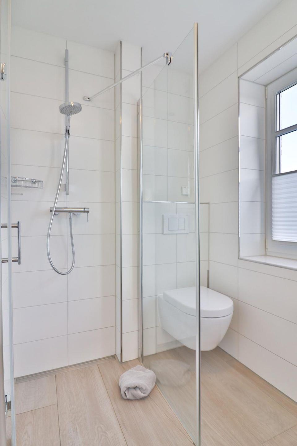 Auf drei Etagen finden Sie insgesamt drei gemütliche Schlafzimmer, zwei Badezimmer und ein Gäste-WC, sodass Sie und Ihre Lieben ausreichend Privatsphäre genießen können. Im Obergeschoss erwarten Sie zwei einladende Schlafzimmer – eines mit einem komfortablen Boxspringbett (180 x 200 cm), Fernseher und einem geräumigen Kleiderschrank sowie einer gemütlichen Sofaecke zum Entspannen. Das zweite Schlafzimmer ist mit zwei Einzelbetten (je ca. 90 x 200 cm), einem Fernseher und einem Schreibtisch ausgestattet – ideal für erholsame Nächte und Momente der Ruhe.