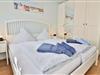Das Schlafzimmer ist mit einem bequemen Doppelbett (180 x 200 cm) ausgestattet, dort können Sie erholsame Nächte verbringen. Ein geräumiger Kleiderschrank bietet ausreichend Stauraum für Ihre Garderobe, während die Außenrollos eine angenehme Nachtruhe garantieren.