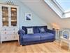 Das Wohn- und Esszimmer ist einladend gestaltet. Auf dem bequemen Sofa können Sie es sich vor dem Fernseher gemütlich machen oder am Esstisch schöne Abende verbringen. Für Ihre Unterhaltung stehen Ihnen Bücher und Spiele für gesellige Runden zur Verfügung.