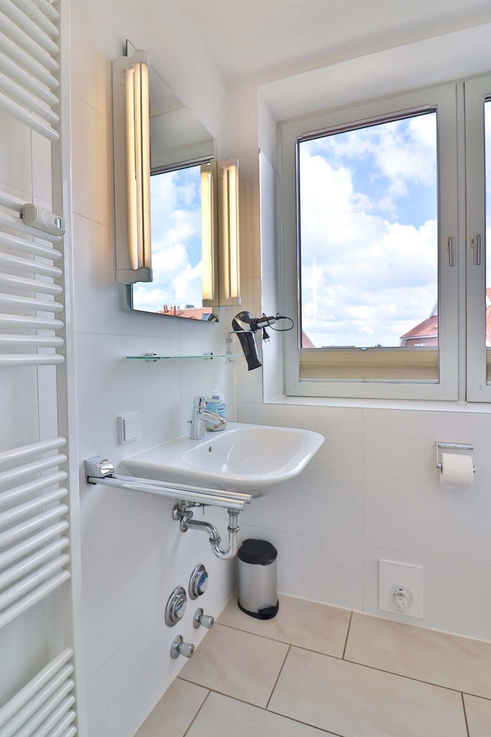 Im Badezimmer erwartet Sie eine Dusche, ein WC sowie eine Handtuchheizung für wohlige Wärme.