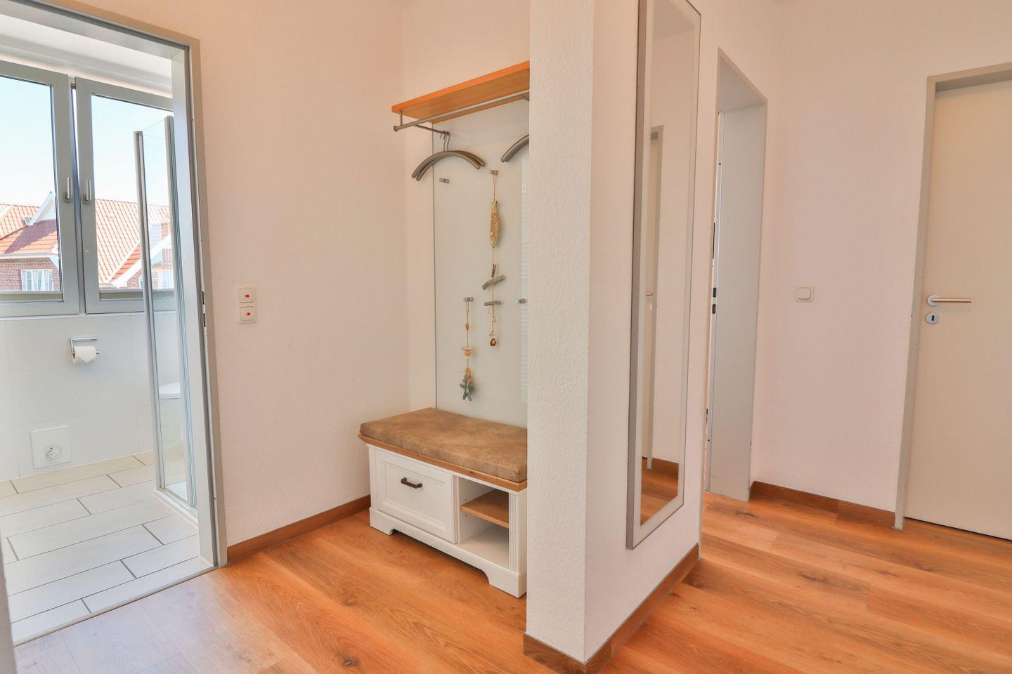 Die Garderobe im Flur bietet Platz für Ihre Jacken und Mäntel.