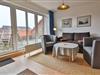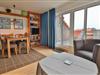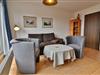 Entspannen Sie sich im behaglichen Wohnbereich mit einem Sofa und zwei Sesseln, umgeben von einer Auswahl an Spielen, Büchern und einem Fernseher sowie ein Radio für Ihre Unterhaltung. Ihr Balkon zur Ostseite lädt zu sonnigen Morgenstunden und frischer Meeresluft ein – der perfekte Start in den Tag.