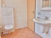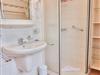 Das große Badezimmer bietet eine Dusche, ein Waschbecken sowie ein WC. Hier finden Sie außerdem Kleiderhaken und ein zusätzliches Wandregal für Ihre persönlichen Utensilien. Auch ein Haartrockner ist hier vorhanden.