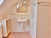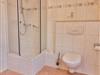 Das geräumige Badezimmer bietet eine Dusche, ein Waschbecken sowie ein WC. Hier finden Sie außerdem Kleiderhaken und ein zusätzliches Wandregal für Ihre persönlichen Utensilien. Auch ein Haartrockner ist hier vorhanden.