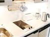 Die Küchenzeile befindet sich in der Nische und ist ausgestattet u.a. mit einem Kochfeld und Geschirrspüler.