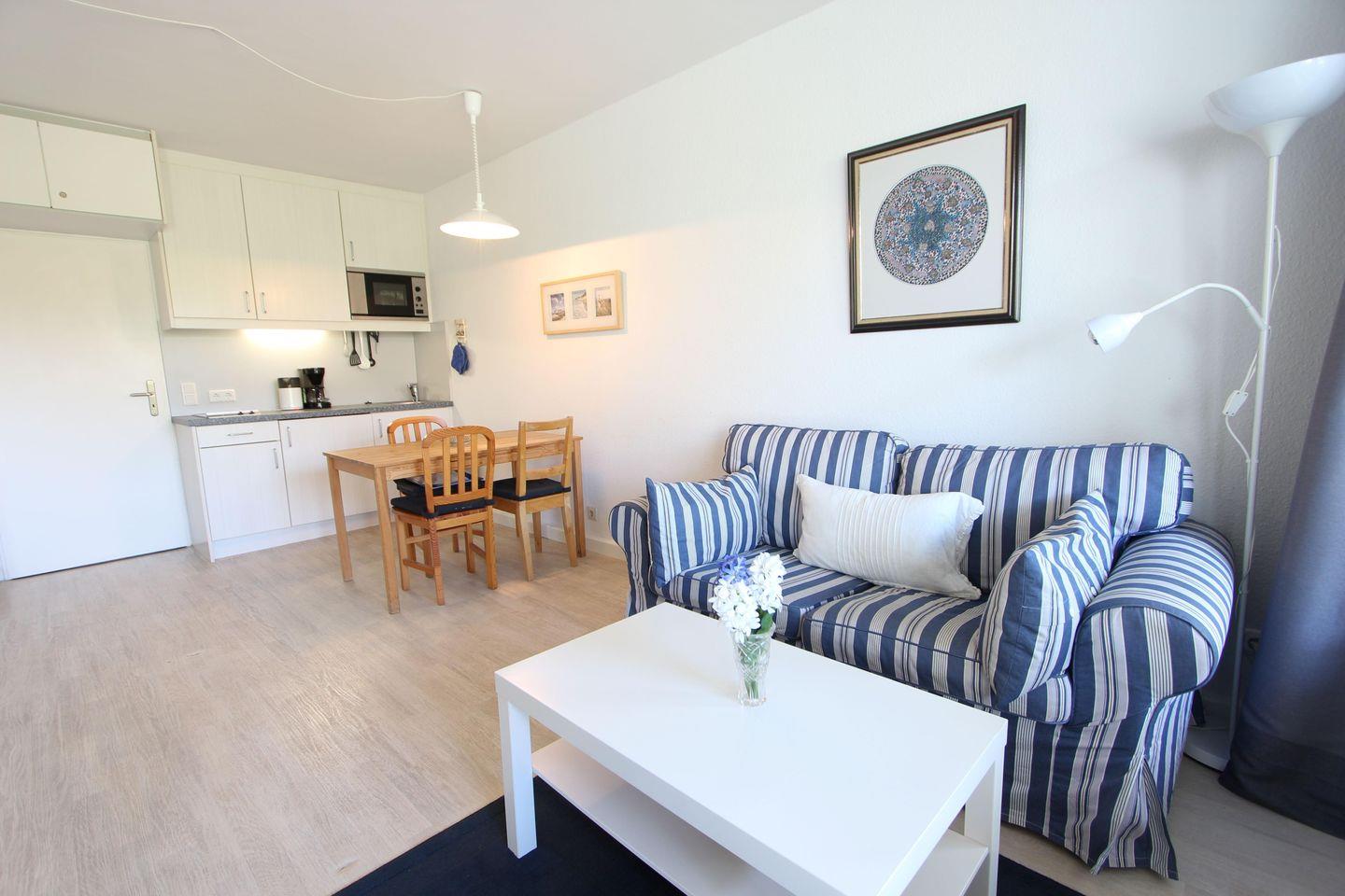 Die Ferienwohnung Strandburg liegt im Erdgeschoss und bietet Platz für bis zu zwei Personen. Sie ist ca. 33 m² groß und verfügt über ein Wohn-Schlafzimmer mit einem Doppelbett. Das Bad verfügt über Dusche und WC. Die Strandburg hat eine komplett ausgestattete Einbauküche, Kabel-TV , eine HiFi-Anlage. Kinderbett und Hochstuhl sind auf Anfrage möglich, die Waschmaschine befindet im Haus in einem separaten Hauswirtschaftsraum.