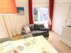 Schöne Erdgeschosswohnung mit einem Wohn-/Essbereich, zwei Schlafzimmern, ein Schlafzimmer mit Doppelbett und ein Schlafzimmer mit Etagenbett.