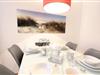 Schöne Erdgeschosswohnung mit einem Wohn-/Essbereich, zwei Schlafzimmern, ein Schlafzimmer mit Doppelbett und ein Schlafzimmer mit Etagenbett.