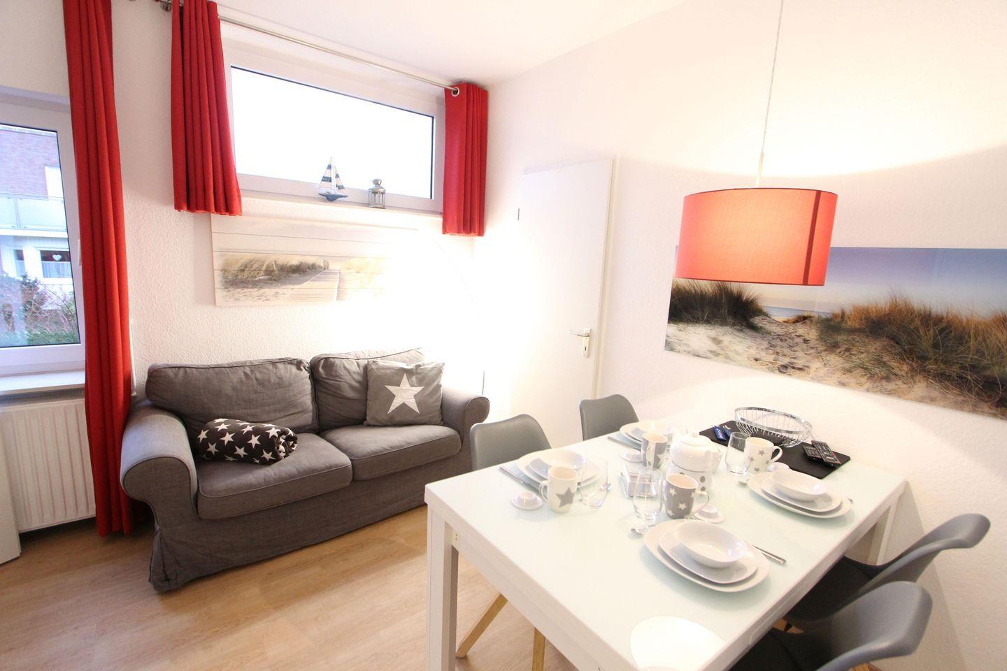 Die Wohnung hat eine Größe von ca. 43 m² und ist für bis zu 4 Personen buchbar. Sie verfügt über einen Garten, Terrasse und Strandkorb.