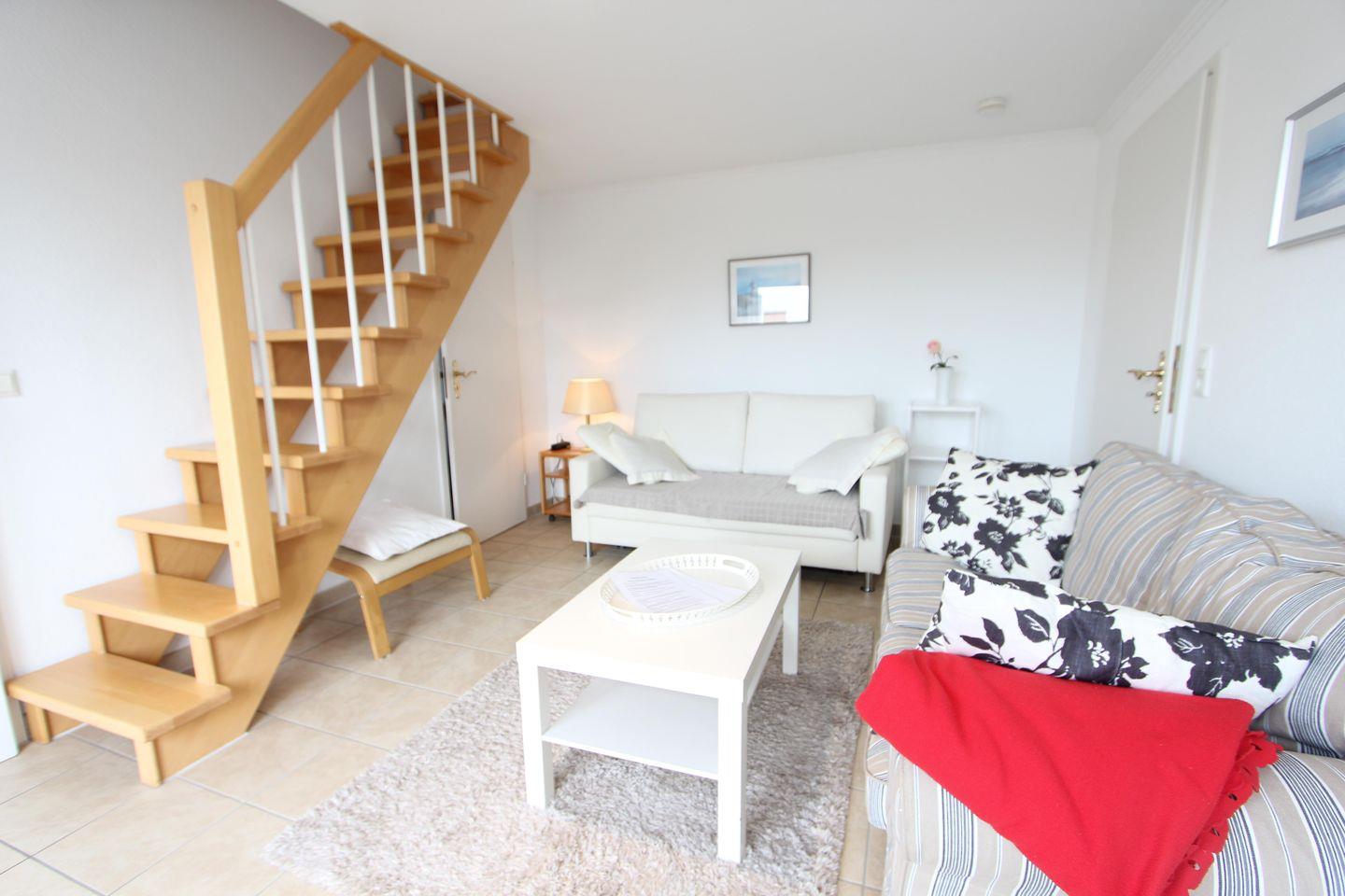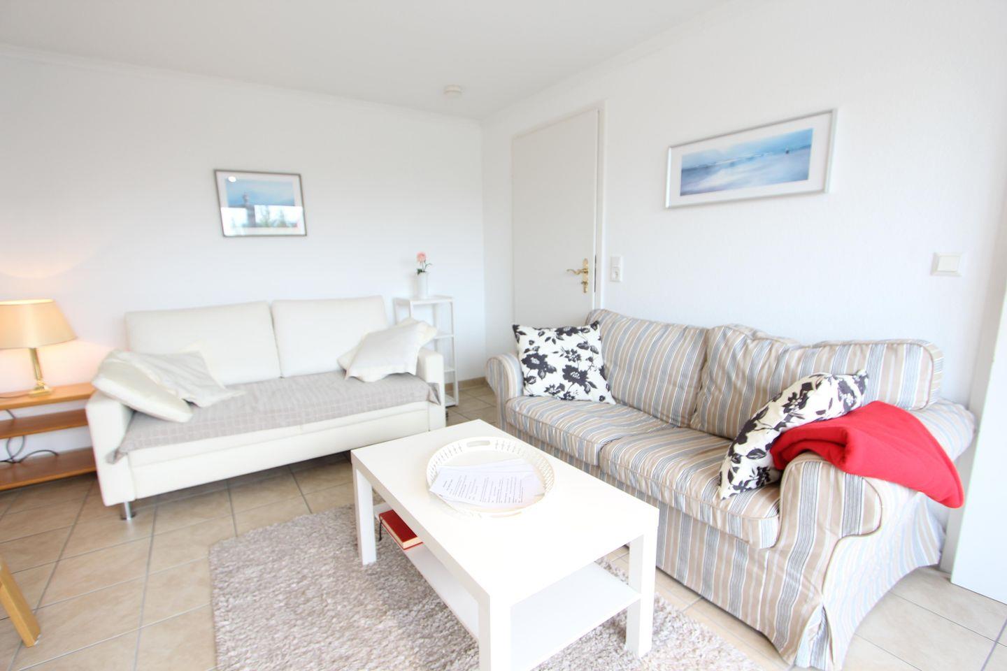 Vom Wohnzimmer Zugang zum schönen Balkon mit Gartenmöbel + Auflagen, kleiner Abstellraum, 1 Schlafzimmer mit Doppelbett, 1 Wohnschlafraum mit einer Schlafcouch, komplett ausgestattete Einbauküche mit Geschirrspüler & Mikrowelle, Sat-TV, HiFi-Anlage, CD-Player