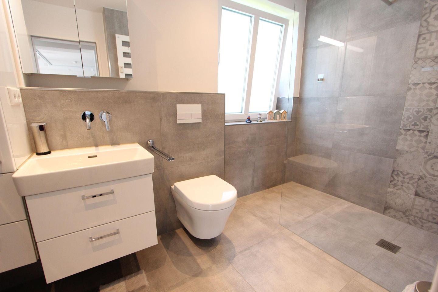 Badezimmer mit große ebenerdigen Dusche