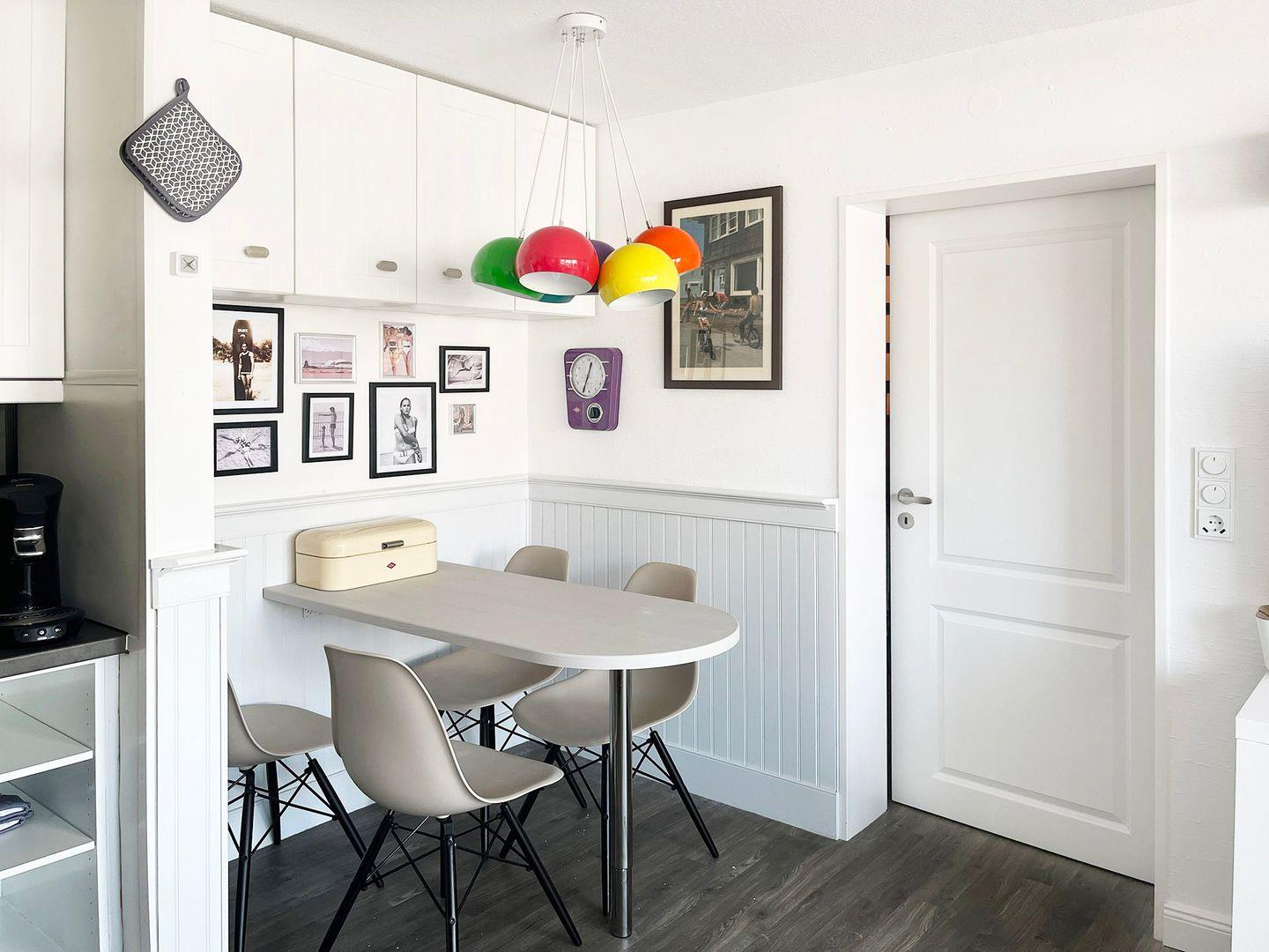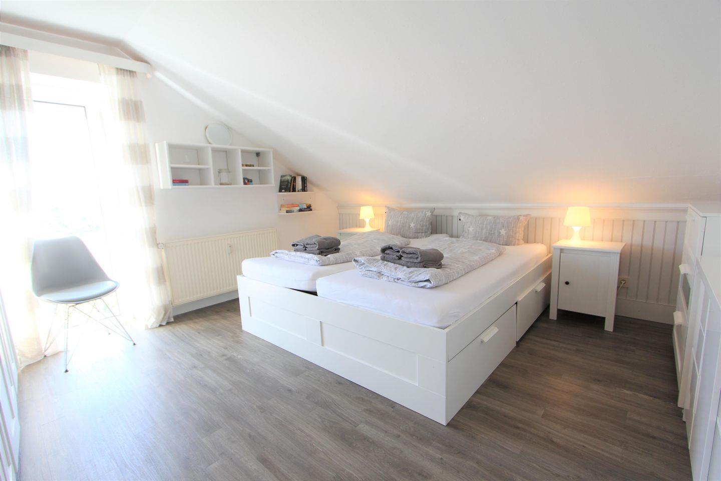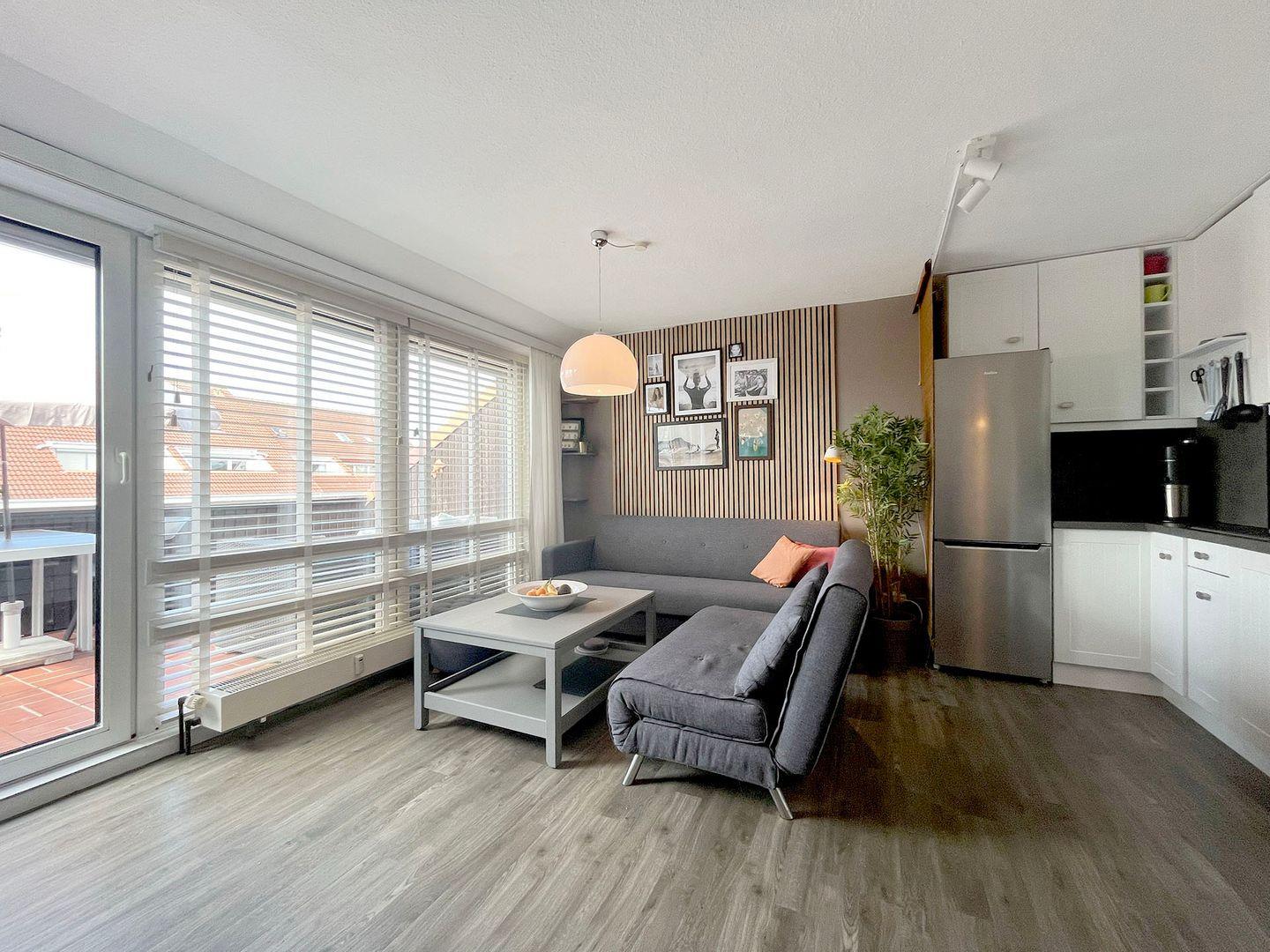 Ferienwohnung mit Dachterrasse (Süd-West), 50 m², für bis zu 2 Personen, Wohn-/Esszimmer mit integrierter Küche, Schlafzimmer, Diele und Bad bietet genug Platz. Kabel-TV, vollausgestattete Küche (Ceranfeld, Backofen), Waschmaschine, Gesellschaftsspiele und Play-Station, Kinderreisebett sowie Kinderstuhl auf Wunsch vorhanden. Föhn vorhanden. In 5-10 Minuten gelangen Sie zum Bahnhof, Ortskern, Kurzentrum oder dem einzigartigen Langeooger Strand.