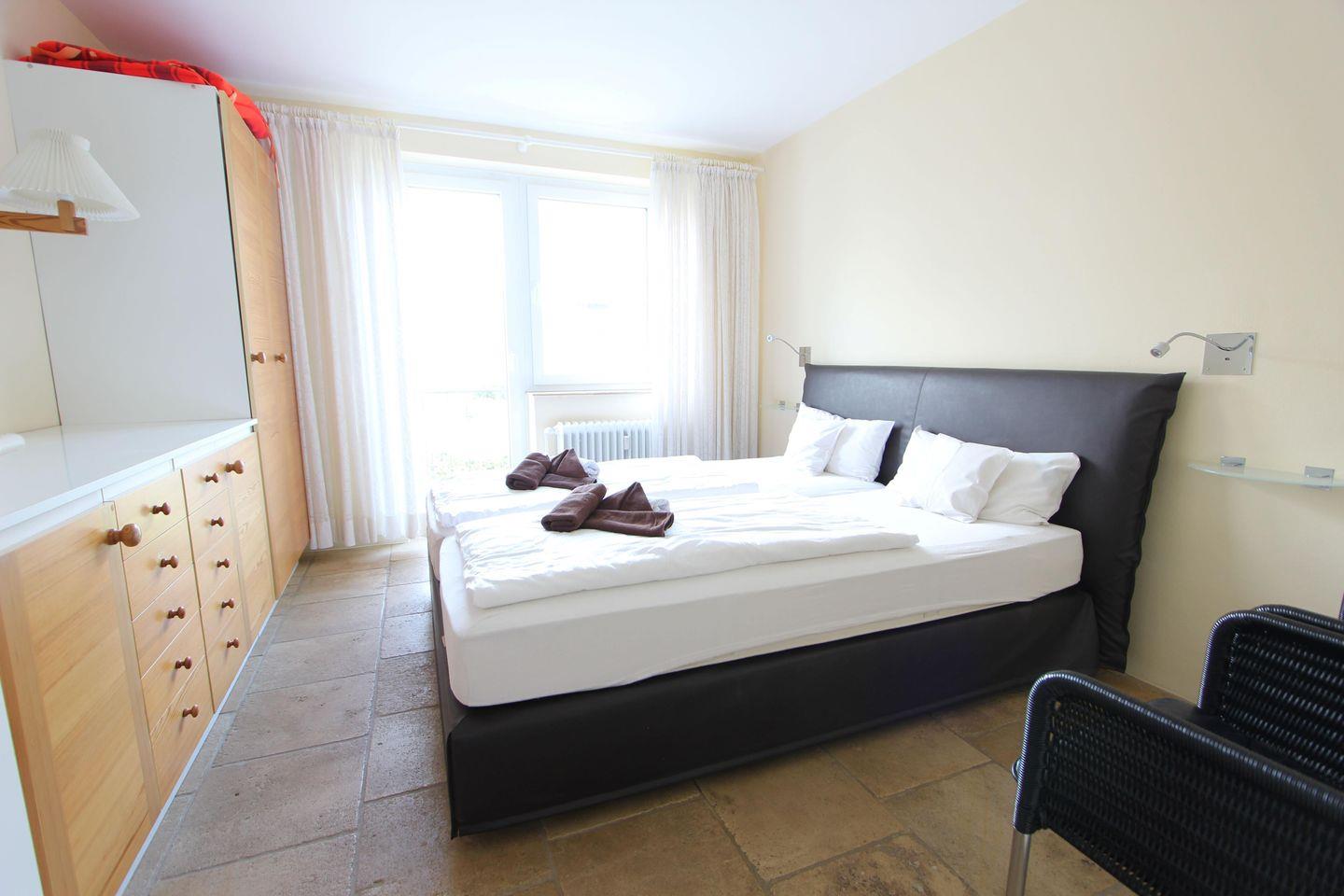 Das Hauptschlafzimmer ist mit einem modernen Boxspringbett ausgestattet (200 cm x 210 cm).