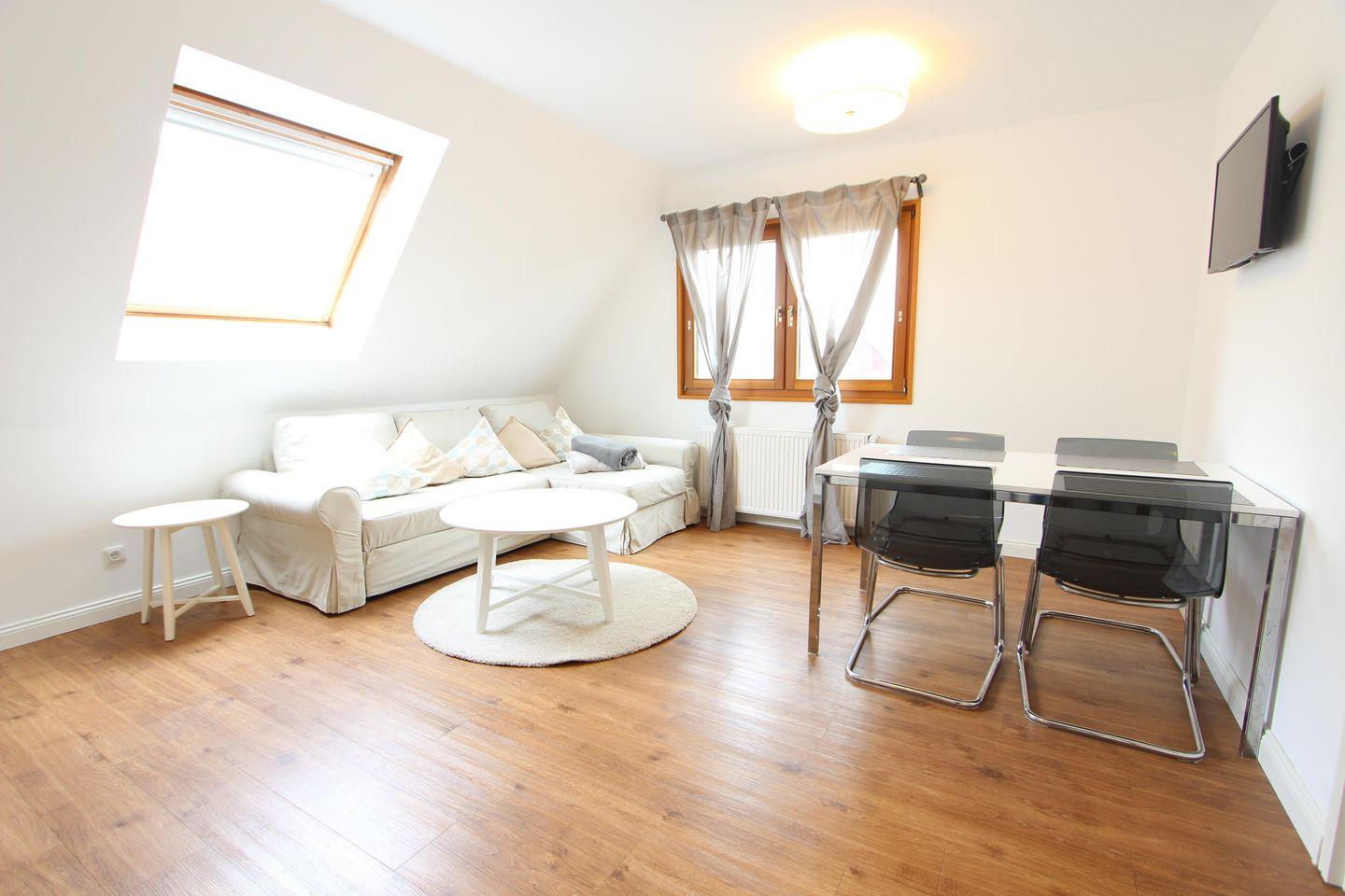 Beide Wohnungen verfügen über lichtdurchflutete Wohnzimmer, voll ausgestattete Küchenzeilen und ein gemütliches Schlafzimmer mit großem Doppelbett, in den Wohnzimmern stehen Euch Schlafsofas zur Verfügung. Die Badezimmer sind mit Dusche und WC ausgestattet.