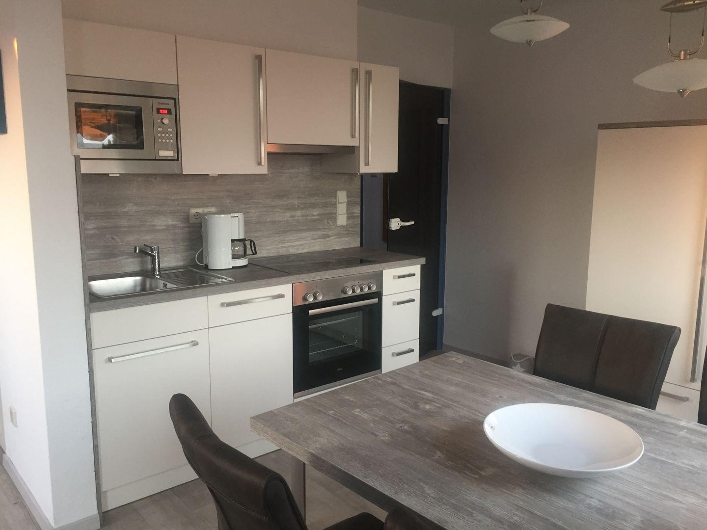 Wunderschön ausgestattete Ferienwohnung, 40 m², eine Wohnküche mit Essgelegenheiten. Wohnküche mit bequemer Couch und Flachbildfernseher, komplett ausgestattete Einbauküche mit Backofen, Spülmaschine, Mikrowelle, Toaster, Kaffeemaschine und Wasserkocher. Ein Schlafzimmer mit Doppelbett, modernes Bad mit Dusche und WC.