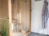 Sauna, Gaskamin, Schlafzimmer mit Boxspringbett 160 x 200 cm, Dusche mit WC.