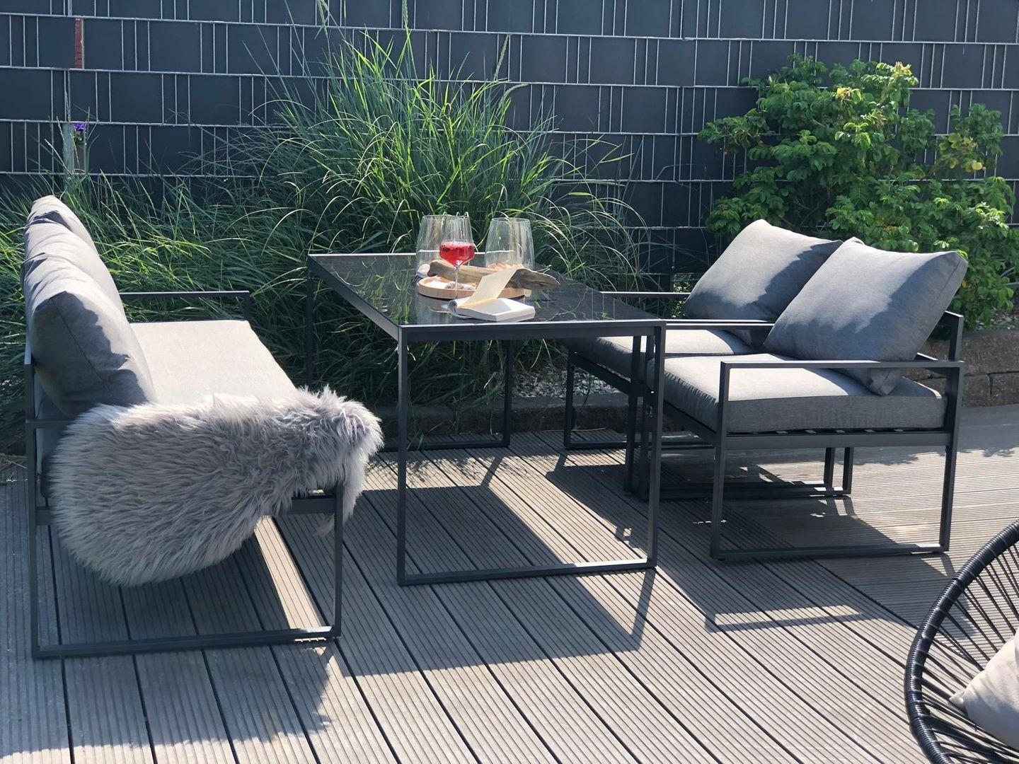 Barrierefrei (nicht Null-Barriere) mit eingezäuntem Garten (1,30 bis 1,80 m hoch), Lounge-Möbel, WLAN und Entertainment.