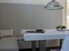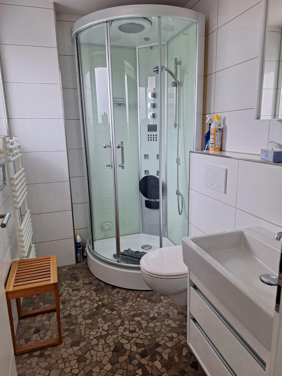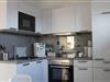 Kombüse mit Essecke, De Longhi Kaffeemaschine, Kühlschrank mit Gefrierfach, Ceranfeld, Backofen, Mikrowelle und Spülmaschine. Zustellbett möglich