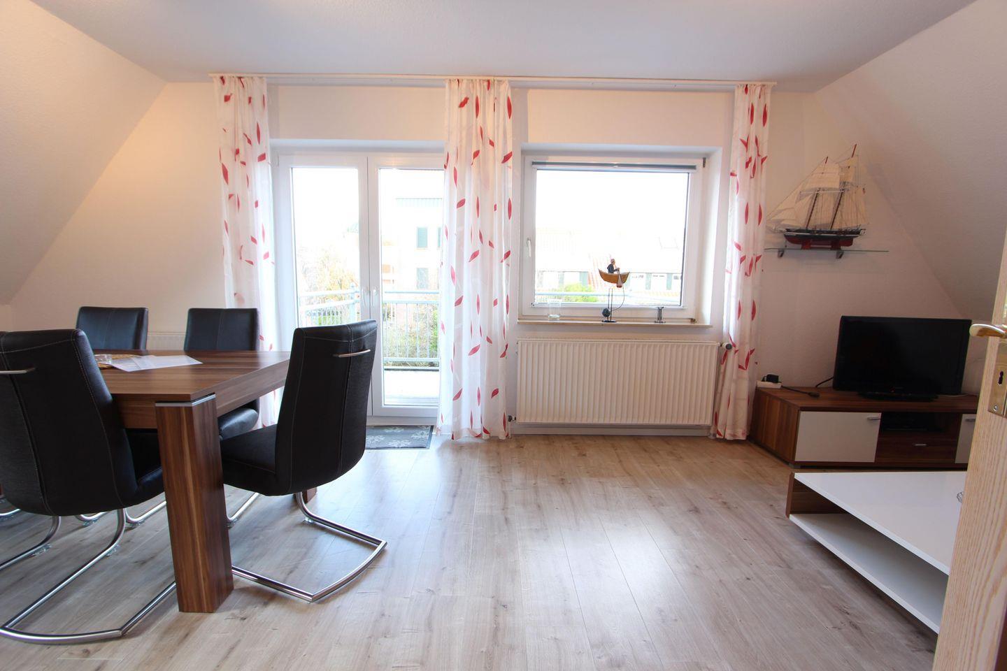 - Wohnzimmer mit Essbereich und Übergang zum Balkon