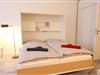 Das Wohn-/Schlafzimmer ist mit einem modernen Schrankbett mit einer Liegefläche von 1,60 x 2,00 m ausgestattet sowie einer Schlafcouch.