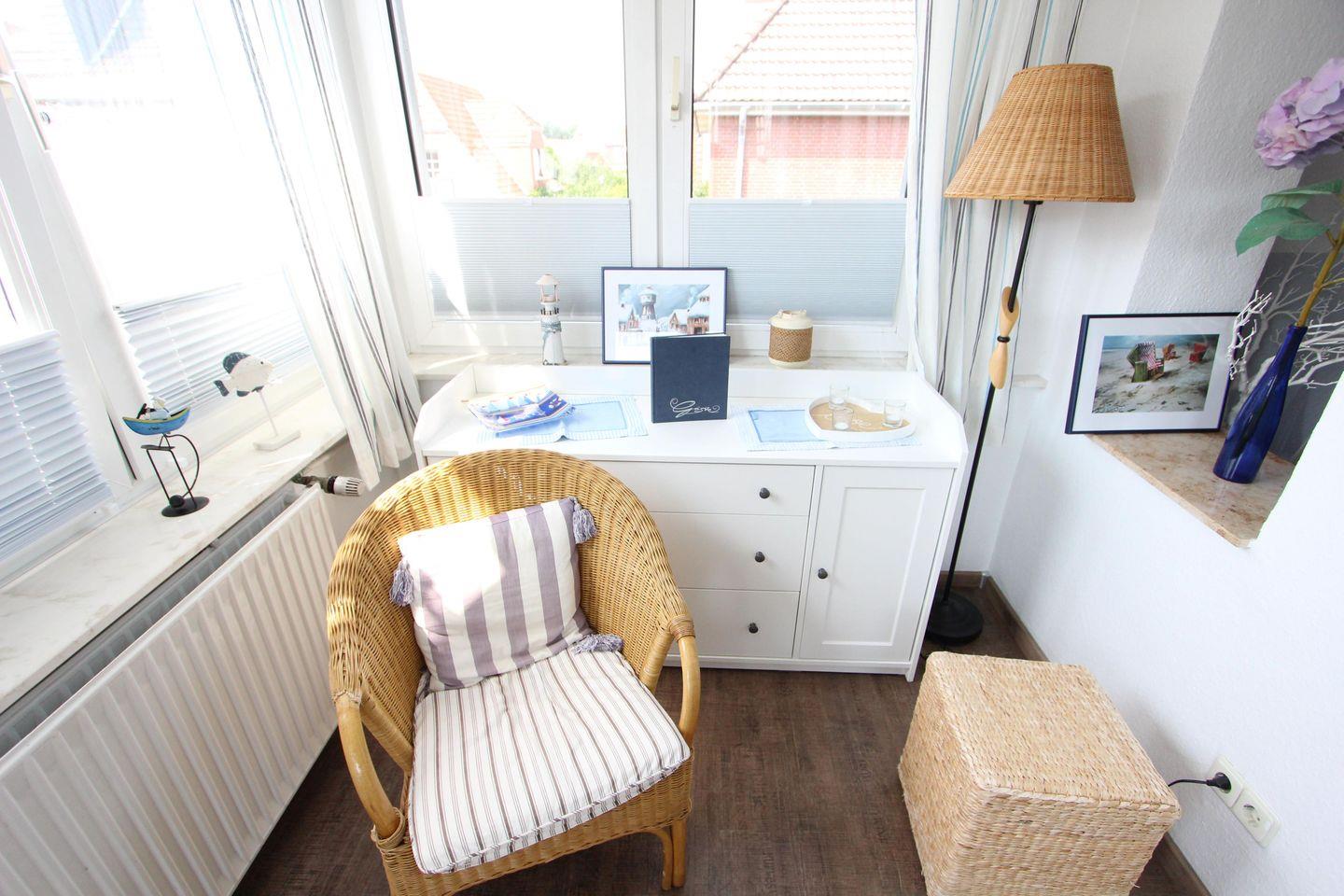 OG, ca. 40 m², geeignet für 2 Personen, mitten im Ortskern, sehr strandnahe Lage (innerhalb von 5 Minuten zu erreichen), 1 Wohnschlafraum (1 Doppelbett), komplett ausgestattete Einbauküche mit Geschirrspüler, heller Wohnraum mit bequemen Polstermöbeln, Kabel-TV, HiFi-Anlage, CD- und DVD-Player, an Wohnraum angrenzender, verglaster Erker mit gemütlichem Esstisch.