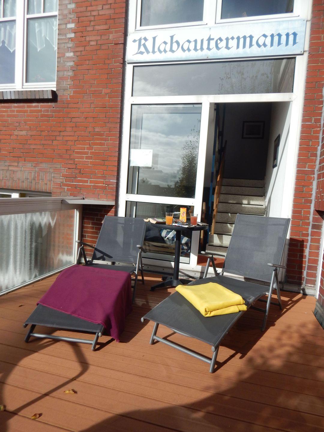 Eine großzügige Gemeinschaftsterrasse ist direkt am Haus.