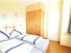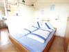 Freundliche, helle Ferienwohnung im 1 Obergeschoss, ca. 37 m², 1 Schlafzimmer mit Etagenbett, 1 Wohn-/Schlafraum mit Doppelbett, welches durch eine Trennmauer vom Wohn-/Essbereich abgetrennt ist.