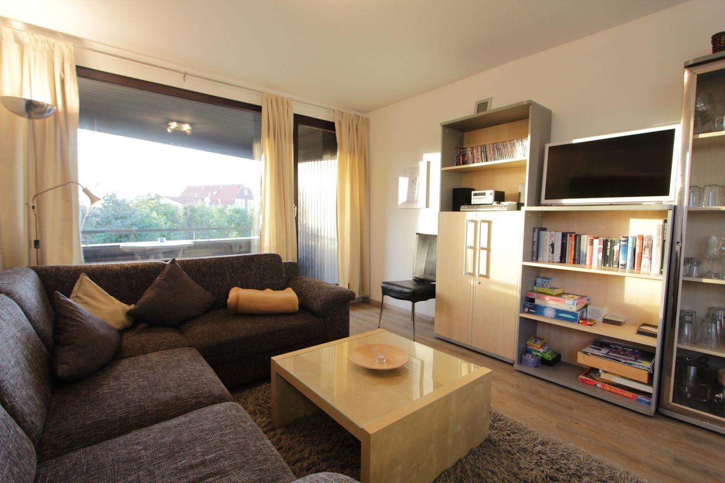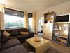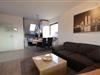 Wohnzimmer mit großer Wohnlandschaft, LCD-TV und Esstisch.