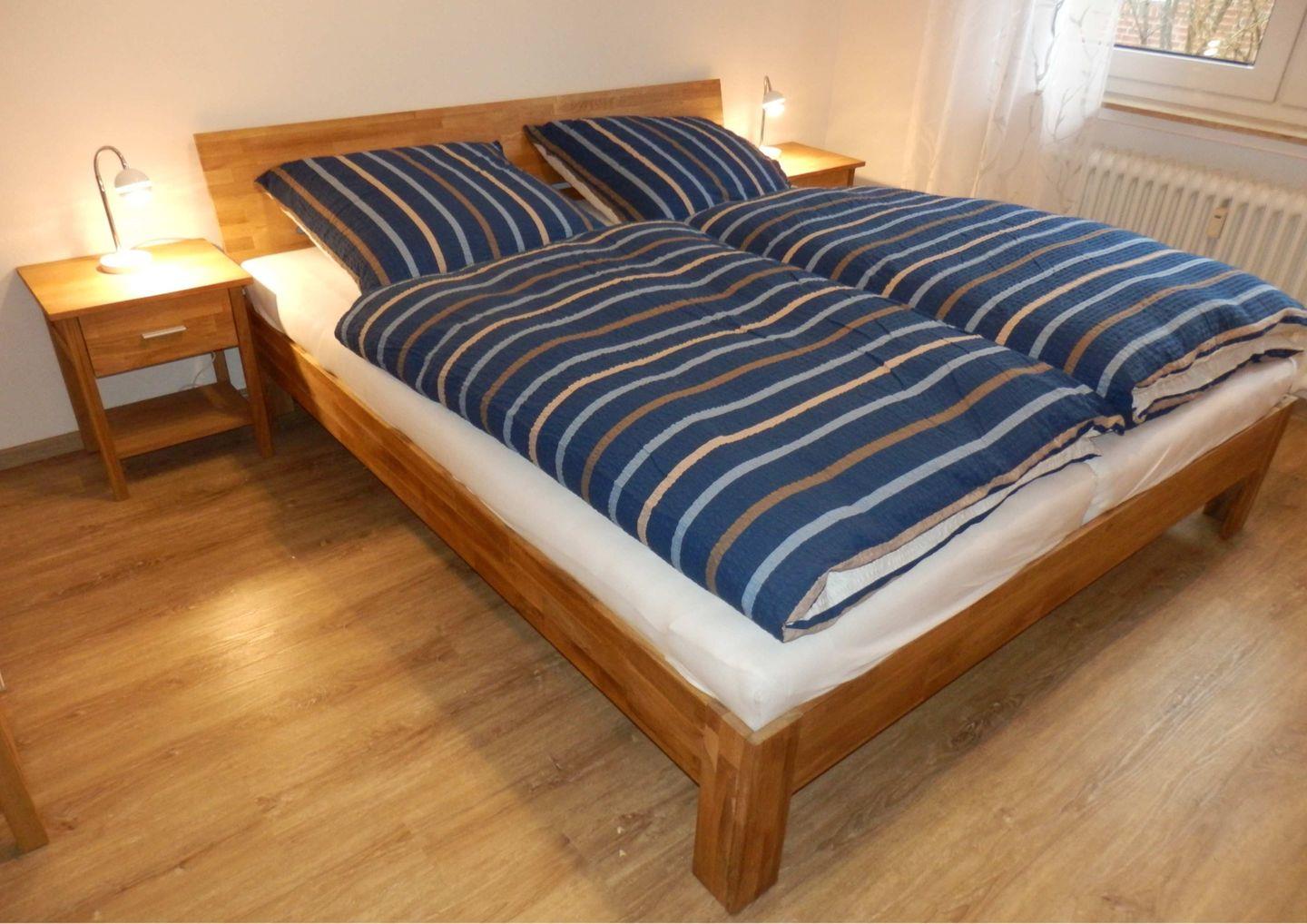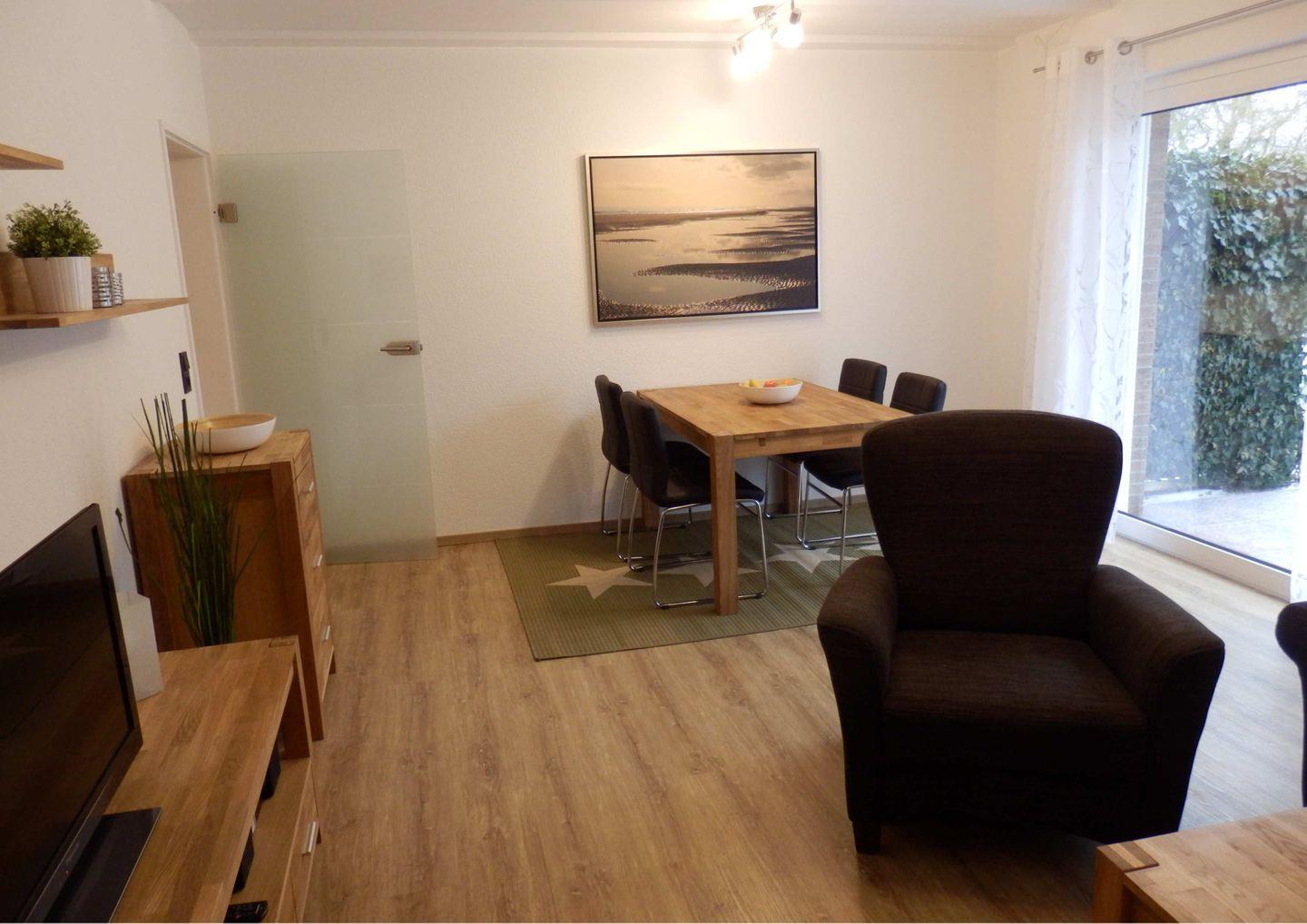 EG, ca.64 m² plus separate Terrasse, für bis 4 Personen, ruhige Lage, 1 Wohn- und Esszimmer, 2 Schlafräume, 1 SZ mit Doppelbett (200 cm x180 cm, ) 1 SZ mit zwei Einzelbetten (je 200 cm x 100 cm), Bad mit Dusche und WC, separates Gäste-WC