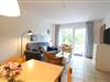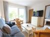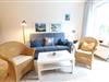 Eine liebevoll und modern eingerichtete Ferienwohnung (ca.45 qm): vom Wohnzimmer Zugang zur Terrasse mit Strandkorb und Garten.
