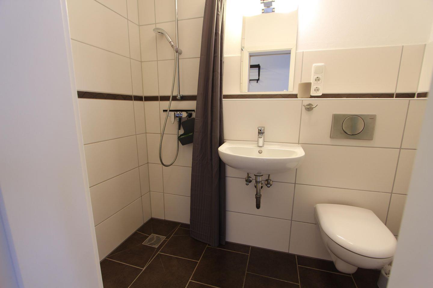 Das Tageslichtbadezimmer verfügt über eine Dusche und WC.