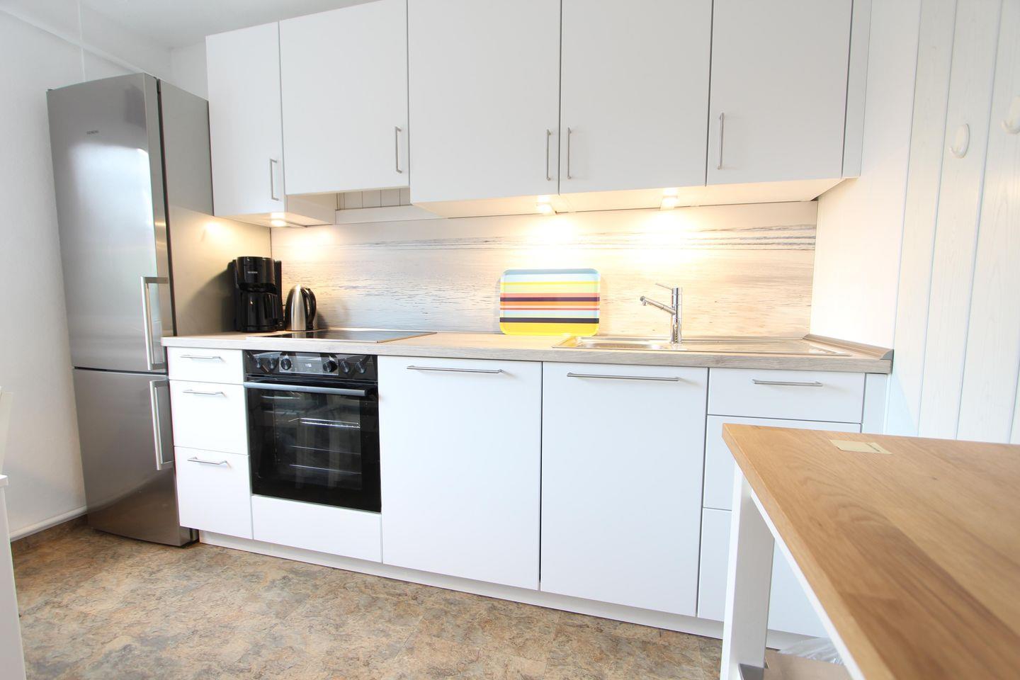 Die Küche wurde im Frühjahr 2023 erneuert und ist voll ausgestattet u.a. mit Geschirrspüler, Backofen, Kochfeld und vielen weiteren Küchenhelfern.
