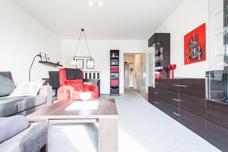 Sie verfügt über ein großzügiges, helles Wohnzimmer mit Panoramafenstern und Zugang zu Balkon; eine separate, voll ausgestattete Einbauküche, ein Tageslichtbad und ein Schlafzimmer.